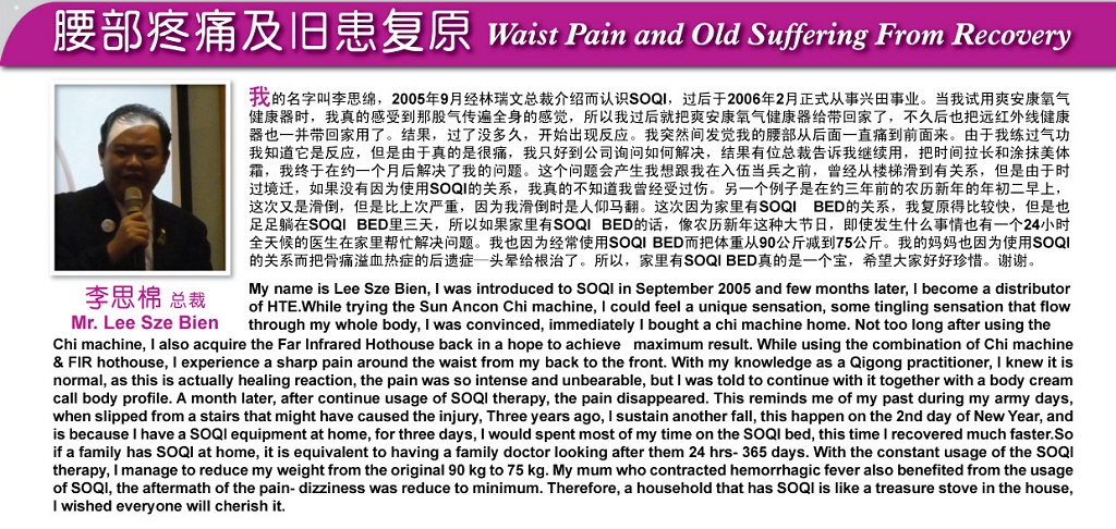 (*These statements and testimonials are willingly submitted by HTE 's Malaysia & Singapore Distributors and are for informational purposes only. These statements should not be construed as medical advice or advice for any health regiments. HTE's Malaysia & Singapore products are not intended to diagnose, treat, or prevent any said diseases and do not claim to provide any cures. HTE's Malaysia & Singapore will not be held responsible for personal testimonials given any medical professionals.)