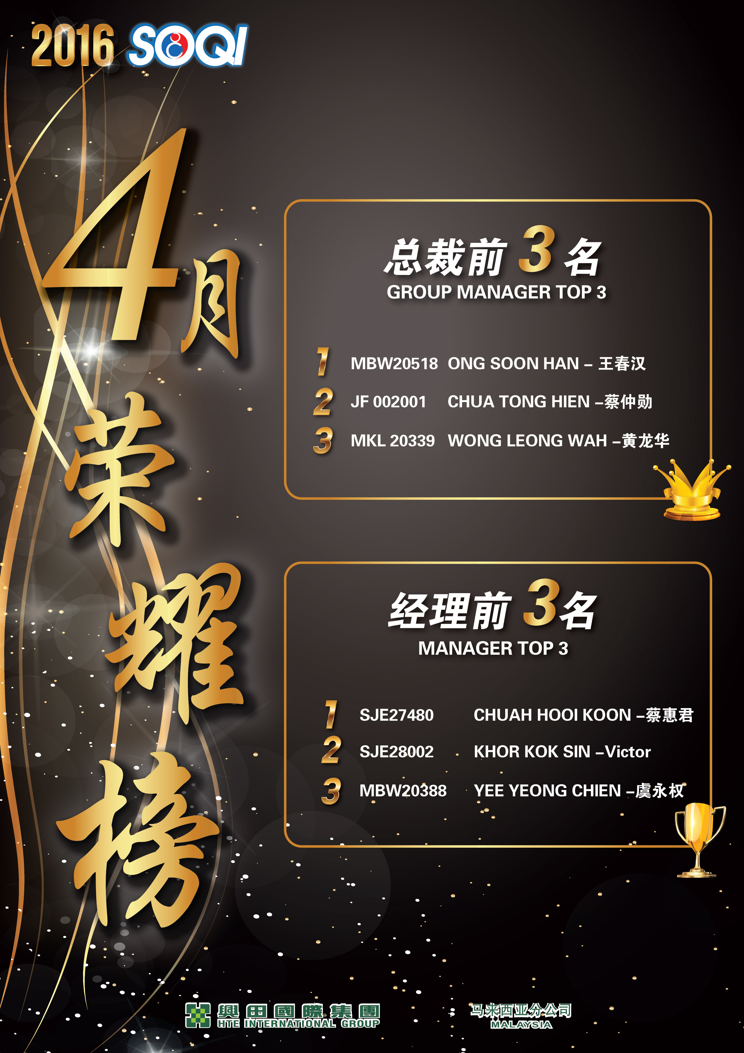 2016年4月份荣耀榜