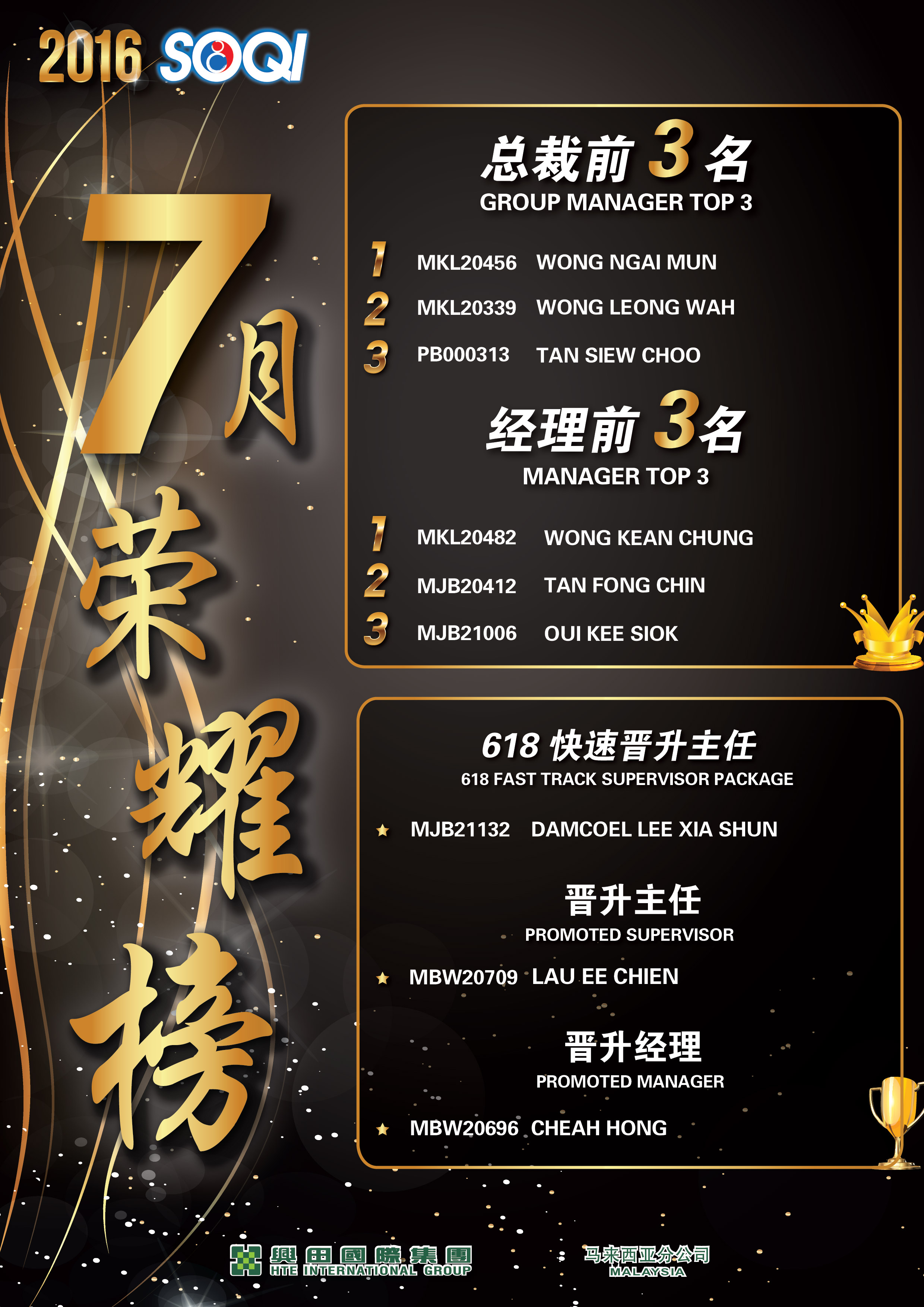 2016年7月份荣耀榜