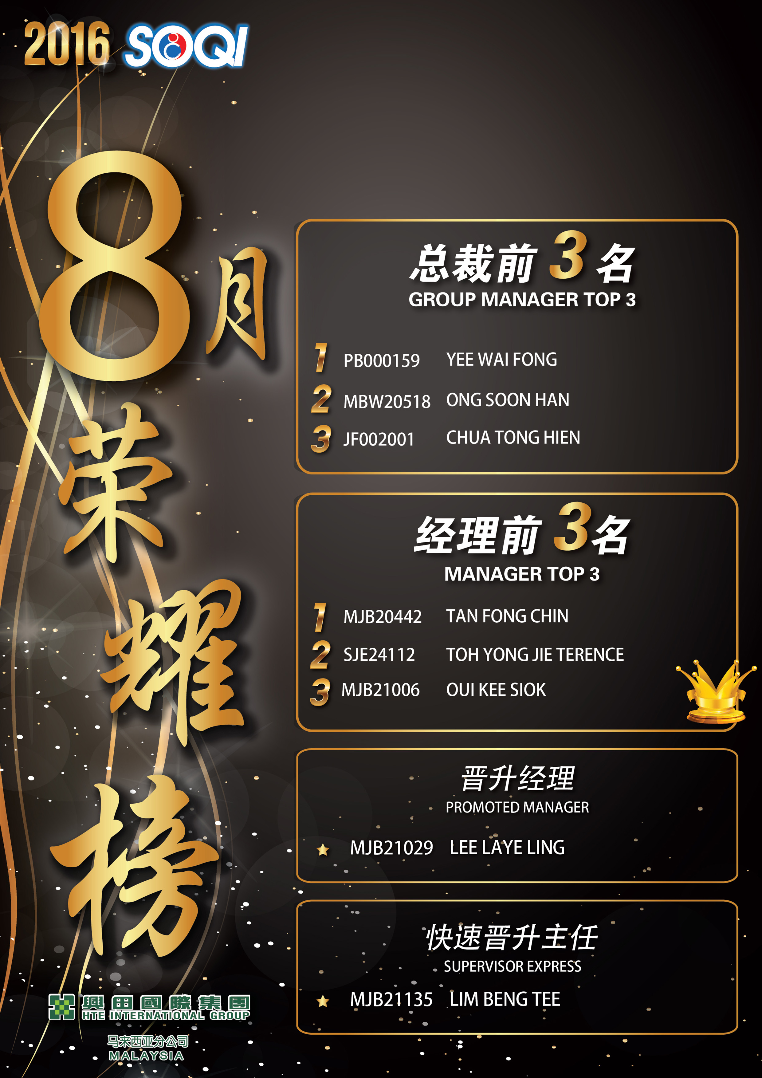 2016年8月份荣耀榜