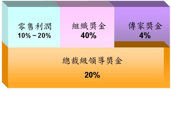 二、零售獎金40% 直銷商個人直接零售商品所獲得之利潤。