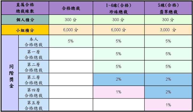 | 2. 累積積分至30,000分,晉升為經理,可取得30%-40%組織獎金。 |