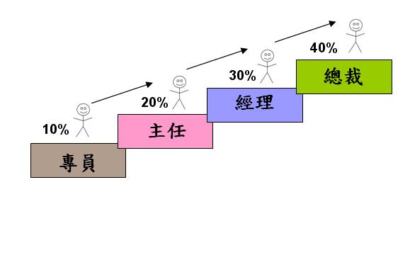 - 從經理級開始到晉升總裁的過程如有超越時,採超越回歸制。